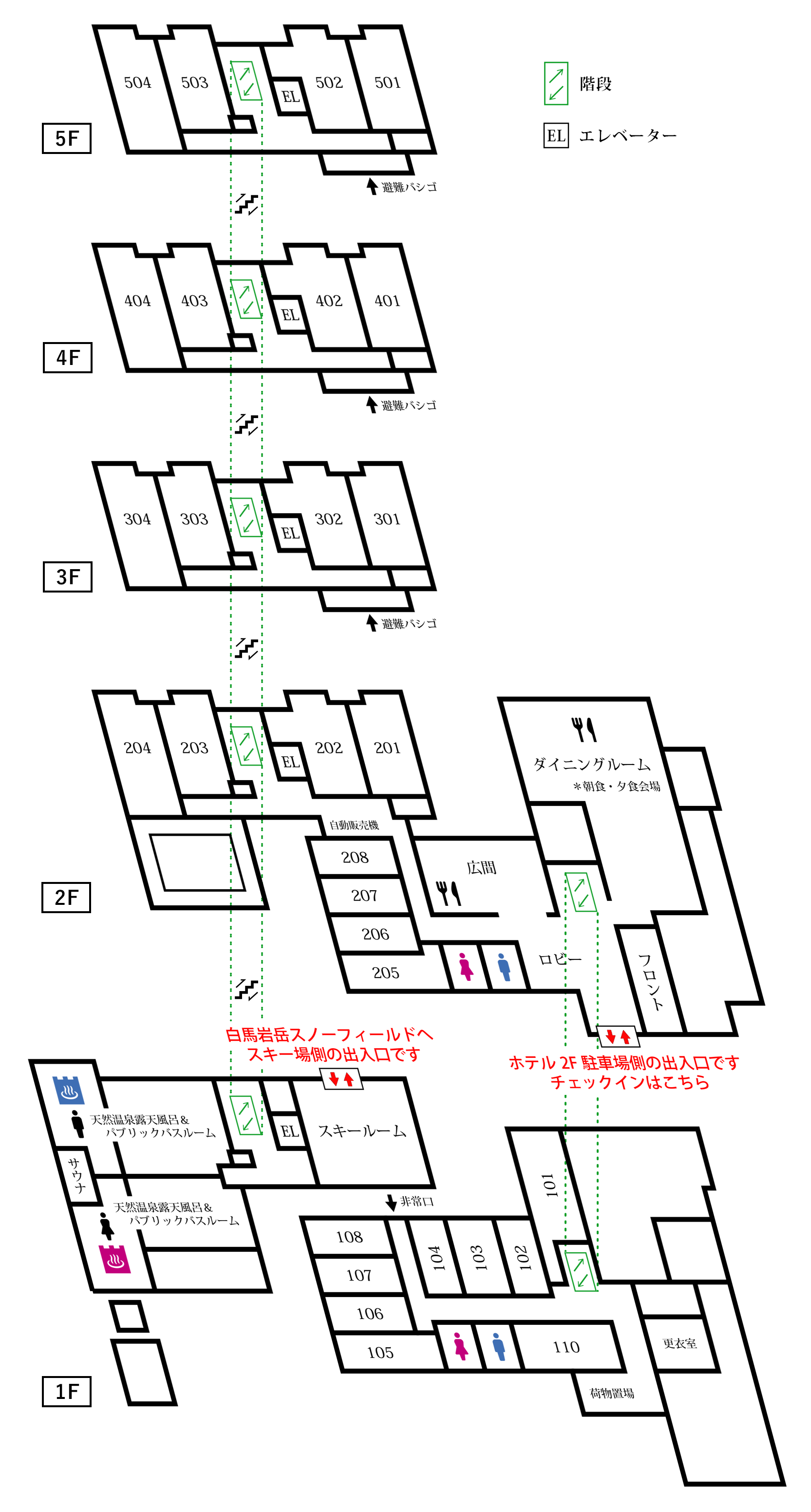 窓からは北アルプスの山々や白馬岩岳マウンテンリゾートを眺めることができます。